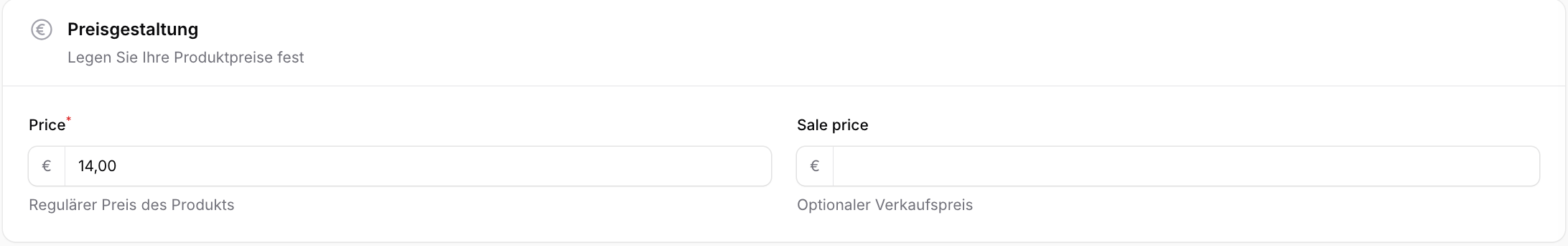Im Eingabefeld Preis ist folgendes zu beachten: