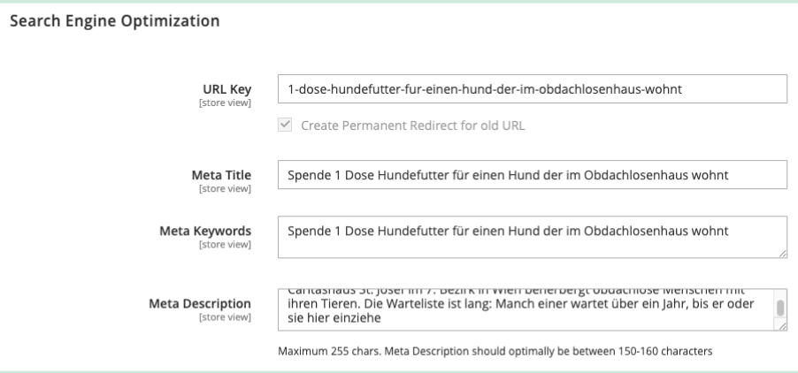 Darüber kann das Produkt auf der Webseite aufgerufen werden. Für alle neuen Produkte - kurze (Vanity)URL eintragen