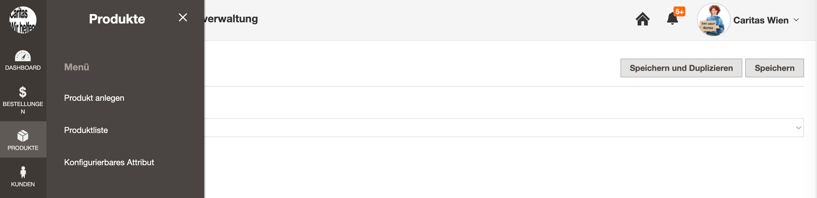 Die Produkte findest du in der linken Navigation unter Produkt, hier kannst du Produkte anlegen oder bearbeiten.