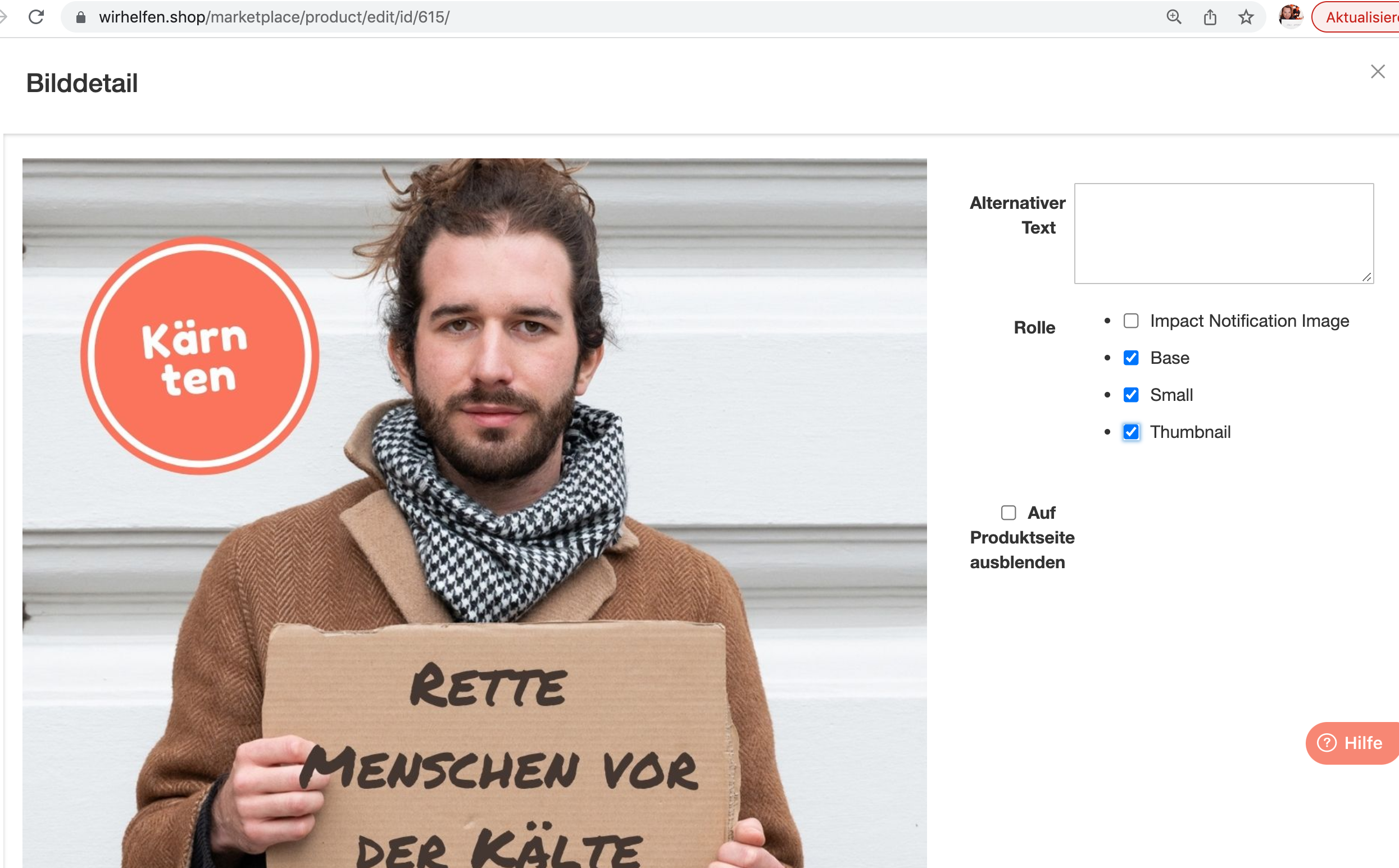3a, Wenn das Bild das neue Anzeigebild werden soll auf das Bild klicken und Bild als "Base", "Small" und "Thumb"klicken, Fenster wieder schließen